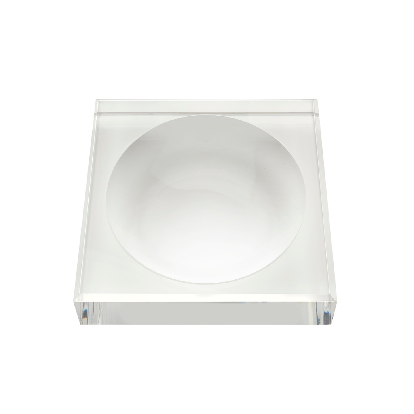 This modern acrylic block mini dish keeps small items together and safely within reach. A beautiful and useful gift for home or office. Handmade of food-safe acrylic. Size: 4" x 4" x 1"