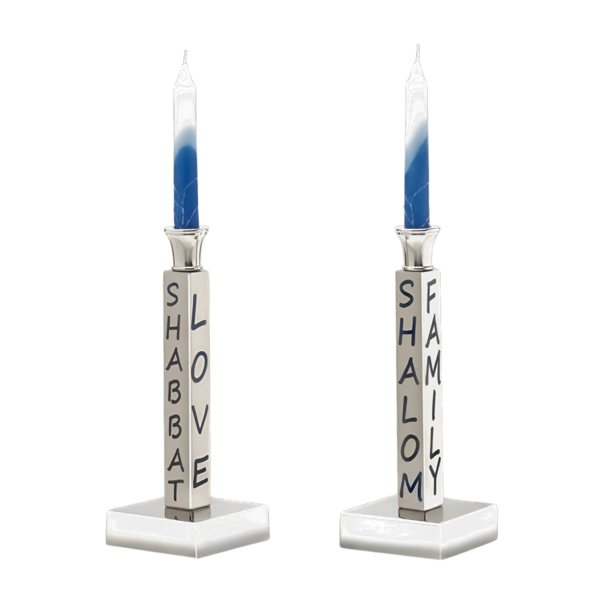 Add a little light & many warm smiles to your family's traditions with beautiful candlesticks bearing words that will make everyone smile...Shabbat, Shalom, Love, Family, Gratitude, Love, Memories, Blessings & Traditions! Made of food-safe polished aluminum with stainless steel candle cups. Size: 8.75"x3.25"